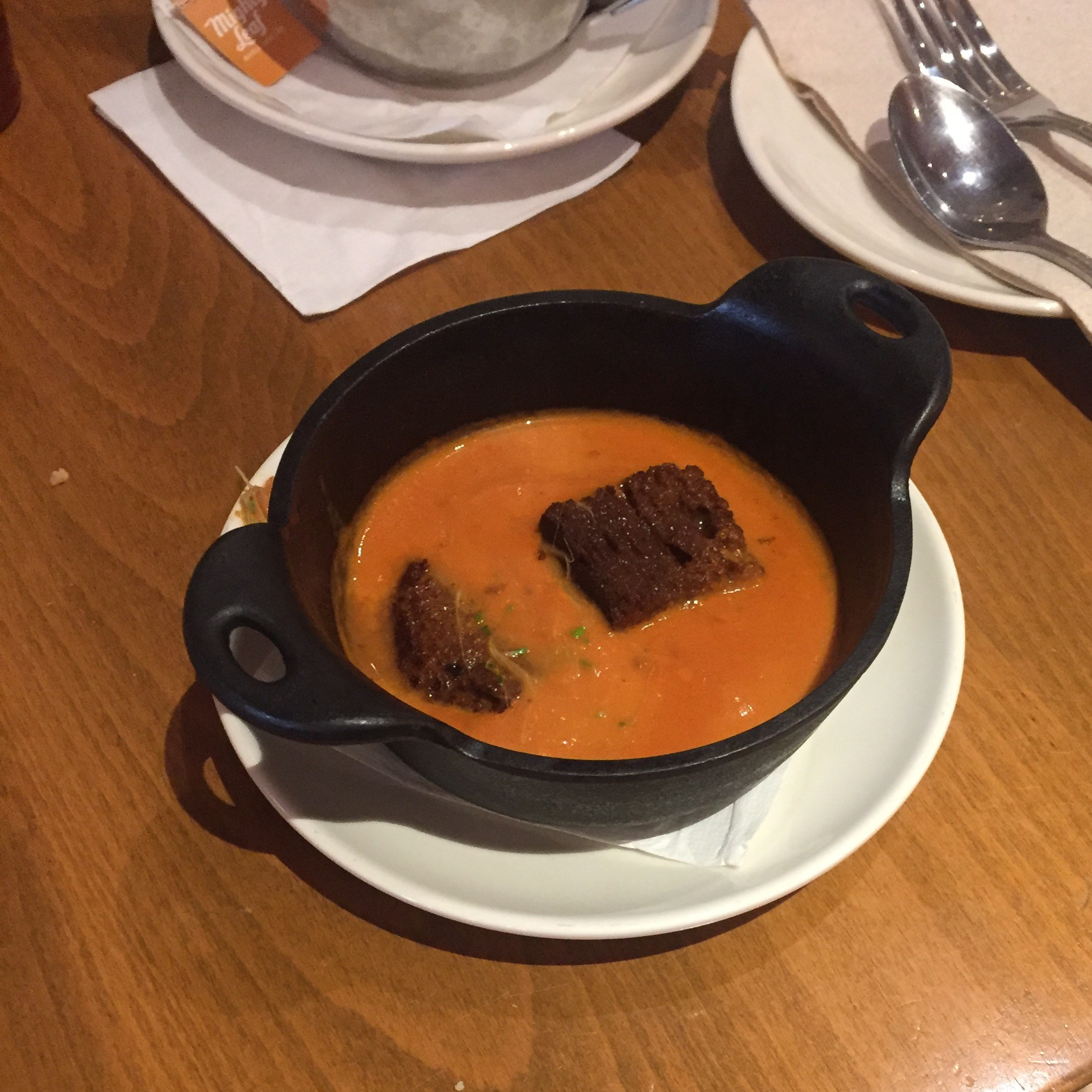 I had the $2 happy hour chicken BLT taco and also a cup of the tomato basil soup (it has a kick to it). Loved them both, although the soup is a little over priced at $5 for a VERY small cup.